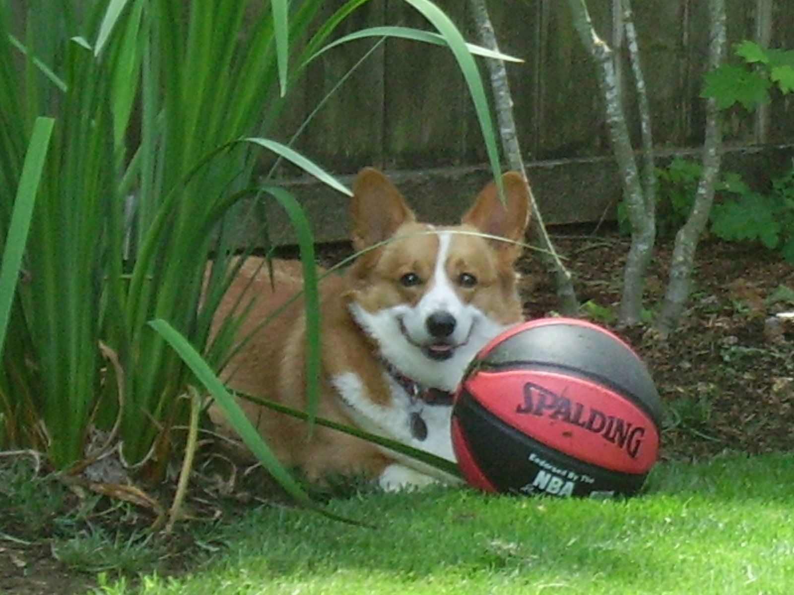 When he was about 6 months old we noticed that he loved balls, what dog doesn’t?, you say. But this was a little unusual. He would herd the ball around the yard and when you’d try to kick it he would get in front of it and block your kick. He was the shortest soccer goalie I had ever seen. He herded the ball around the yard, around the house, everywhere it could go and he did it to the point of exhaustion. Needless to say he is a source of joy and entertainment for a lot of people.